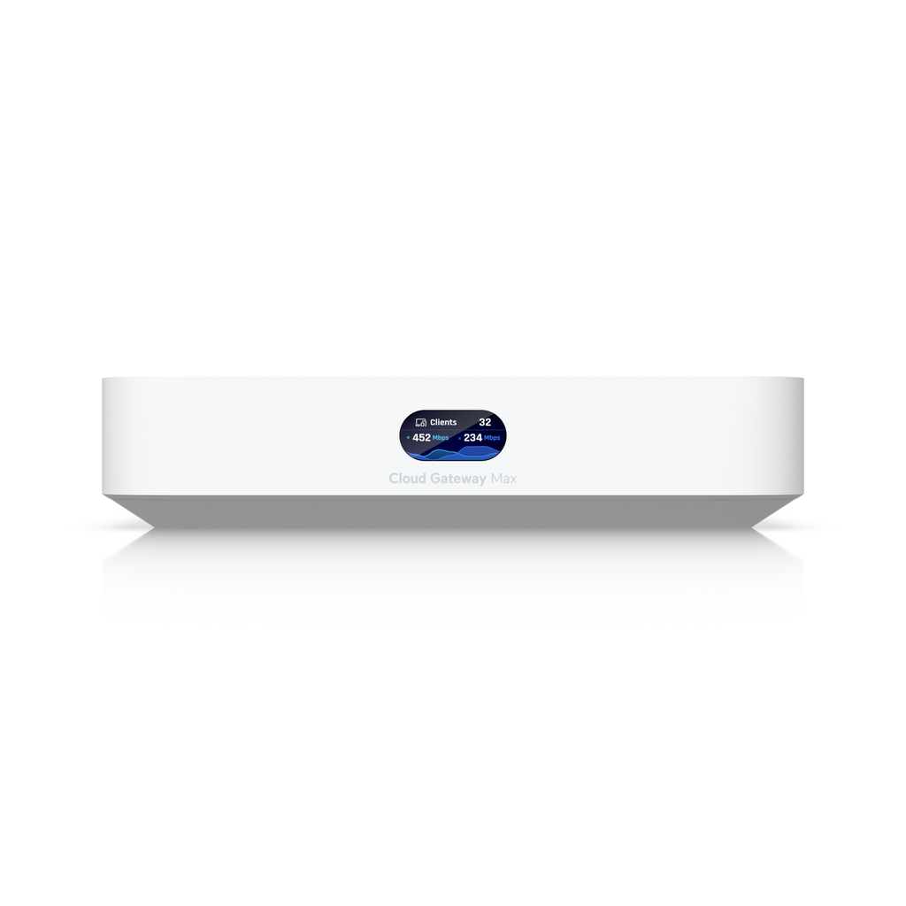 The Ubiquiti UniFi Cloud Gateway Max (UCG-Max) is a powerful next-generation UniFi gateway designed to deliver high-performance routing, advanced security, and integrated application hosting in a compact desktop form factor. Built for modern business networks, it combines enterprise-grade firewall protection, VPN support, and multi-gig connectivity with seamless UniFi management.
